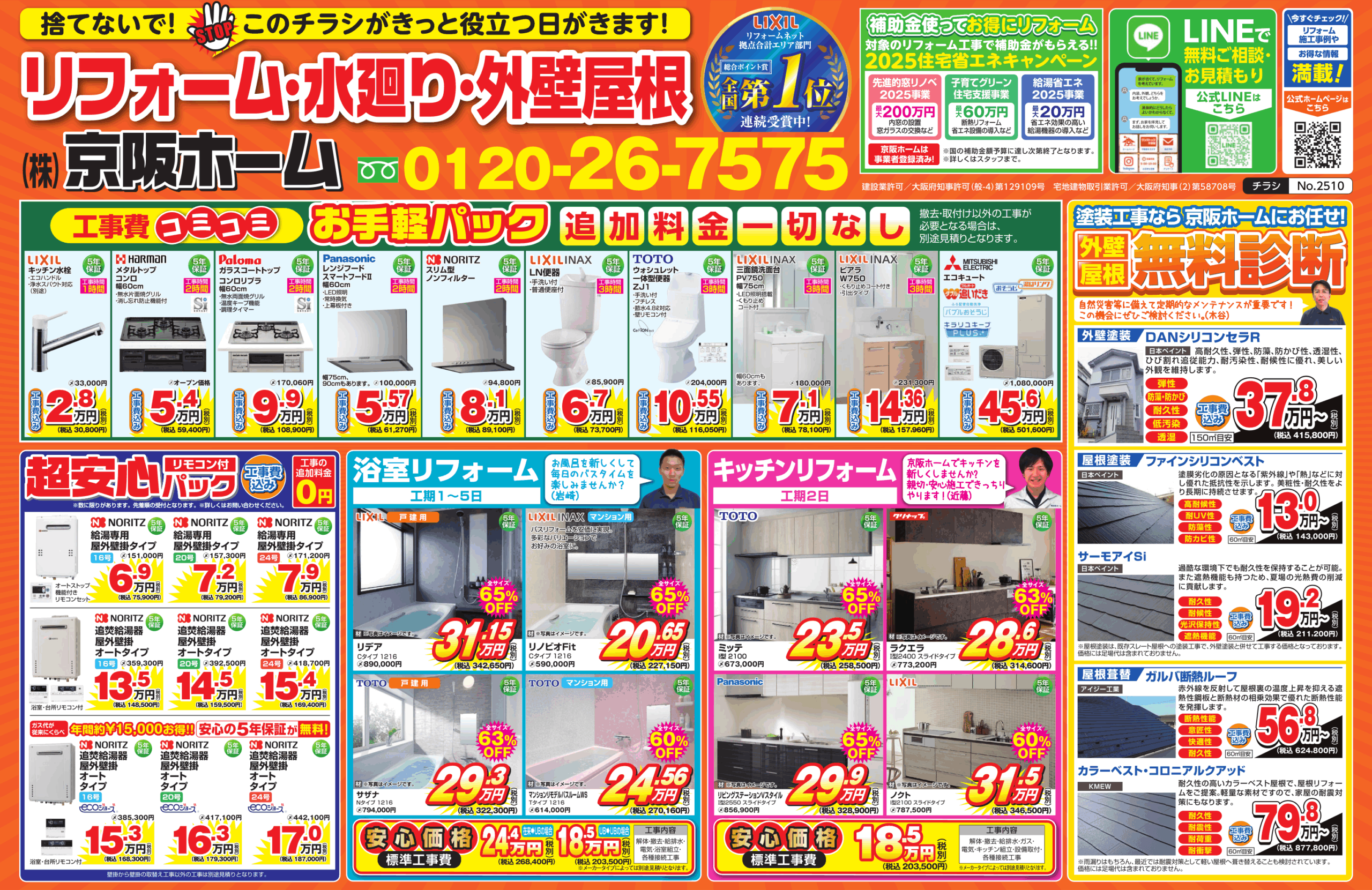 枚方・高槻・東大阪・吹田・寝屋川のリフォーム・水廻りの事なら京阪ホームにお任せ下さい!