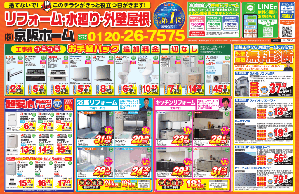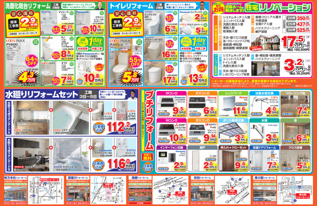 京阪ホーム吹田店はキッチン6台、システムバス3台、洗面化粧台4台、トイレ3台
