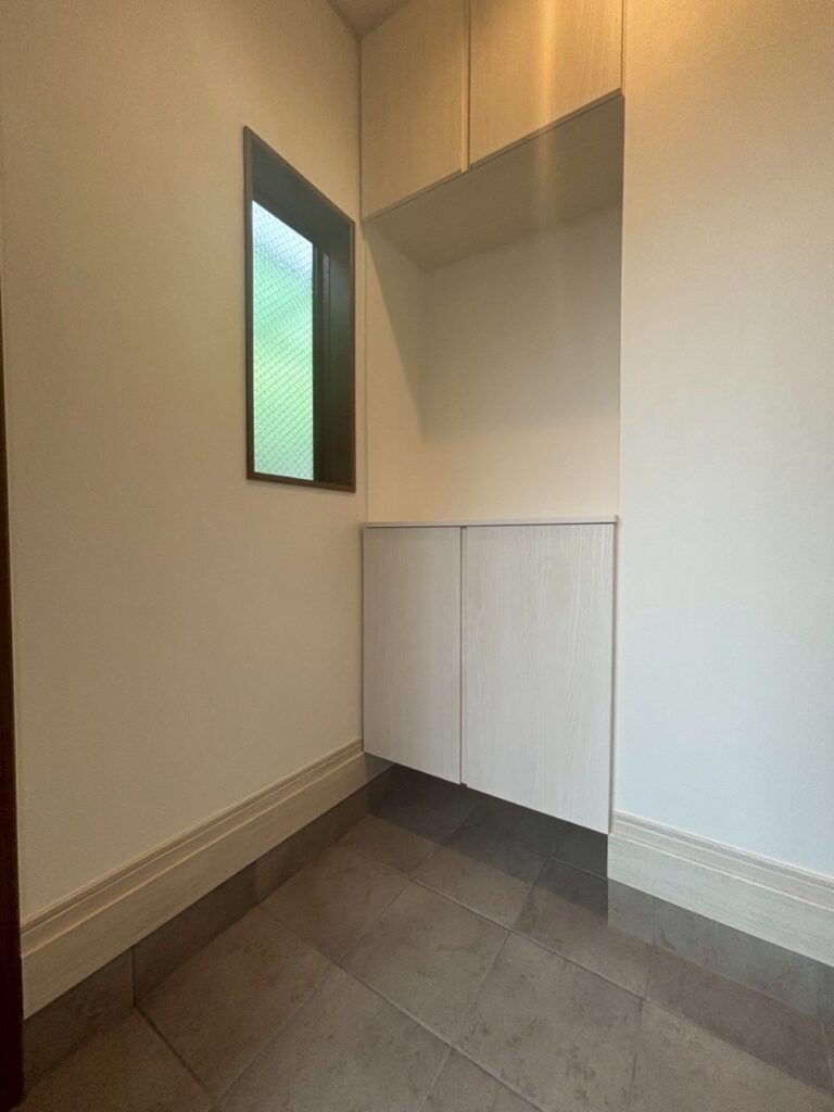 新たに増設した壁に合わせて玄関収納を取り付けました。