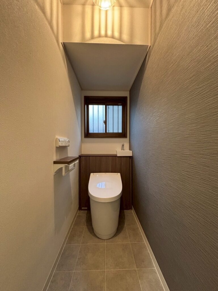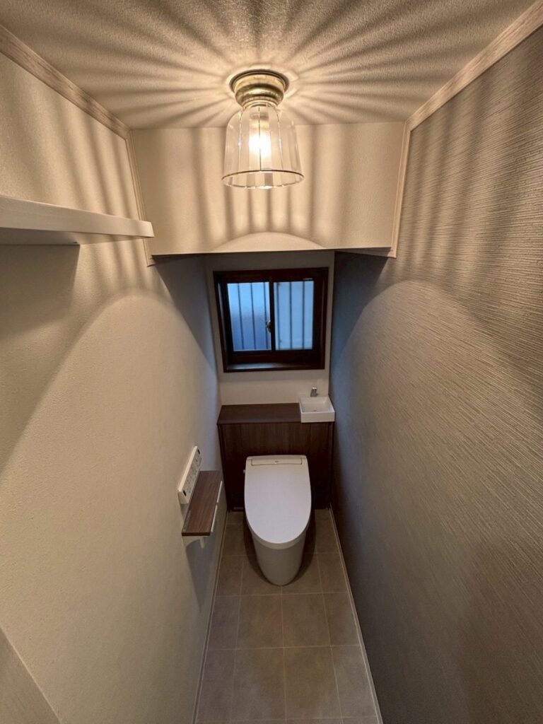 また、壁紙の一面をアクセントクロスにするだけで、トイレの雰囲気が一新。