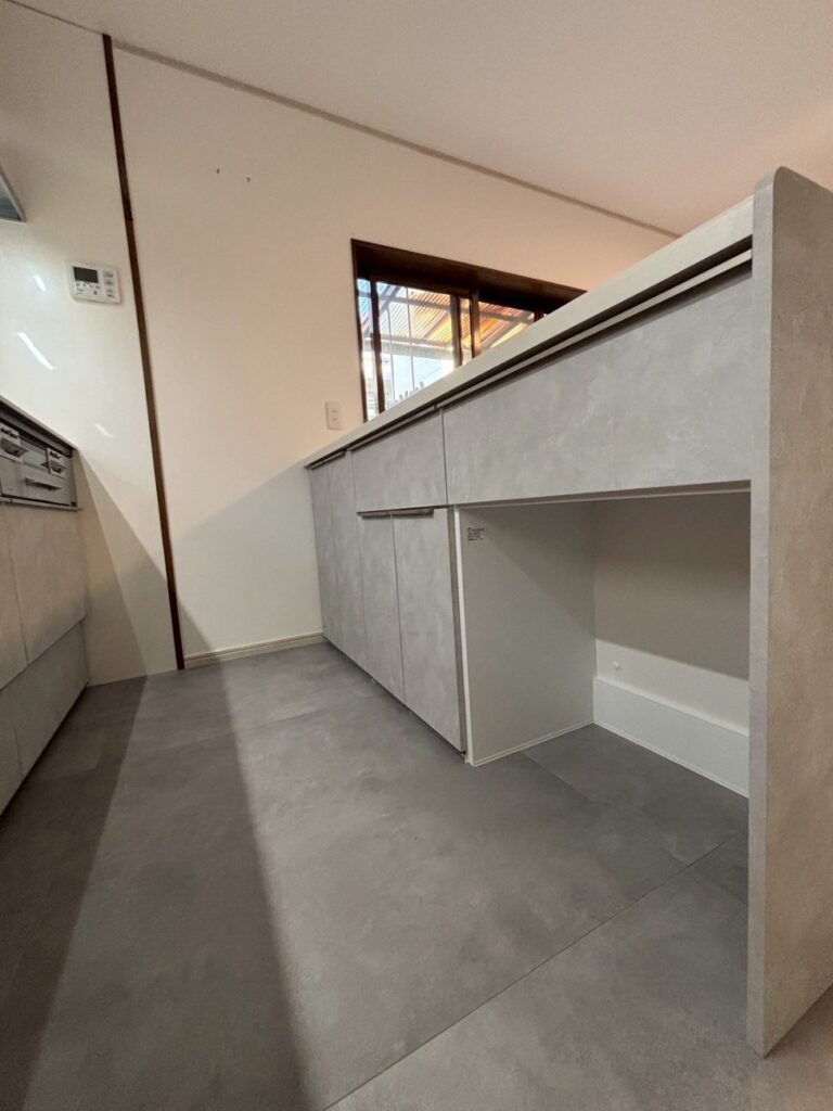 また、カップボード下の空間はキャスター付きのゴミ箱を置くことでリビングから死角になり、生活感を抑えられます。