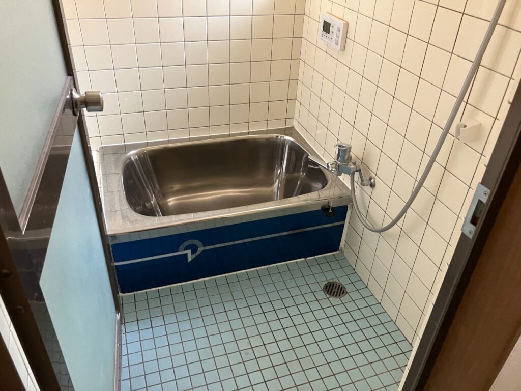 昔ながらのタイル壁・床の在来浴室でした。