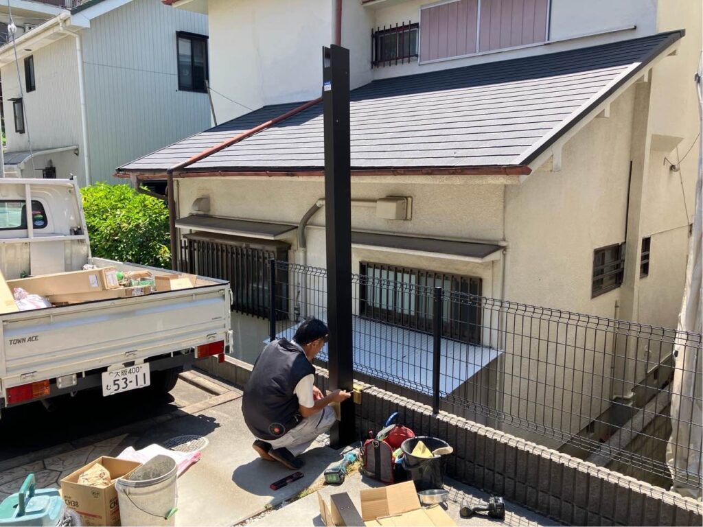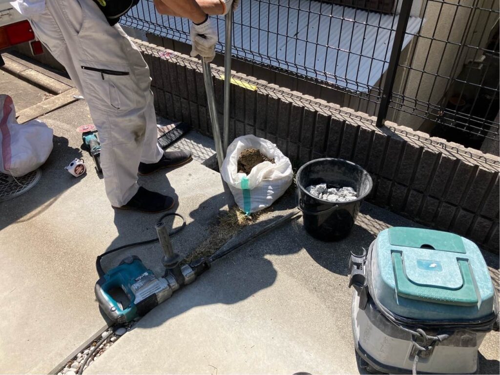 設置位置の地面に配管が通ってないか確認し柱の設置位置を決定します。