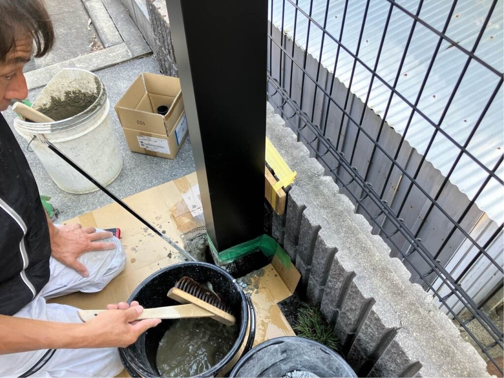 メーカーや種類によって柱基礎や埋め込む寸法が違いますので商品を確認して掘っていきます。 柱基礎や埋め込む寸法を間違えてしまうと強度が弱くなるので注意です。