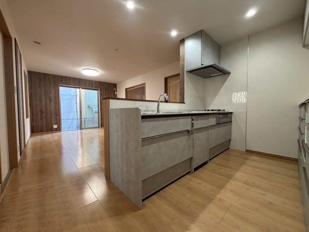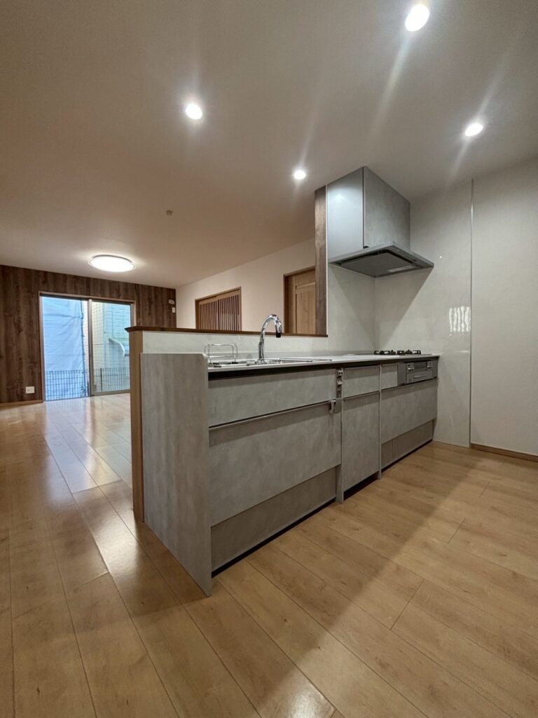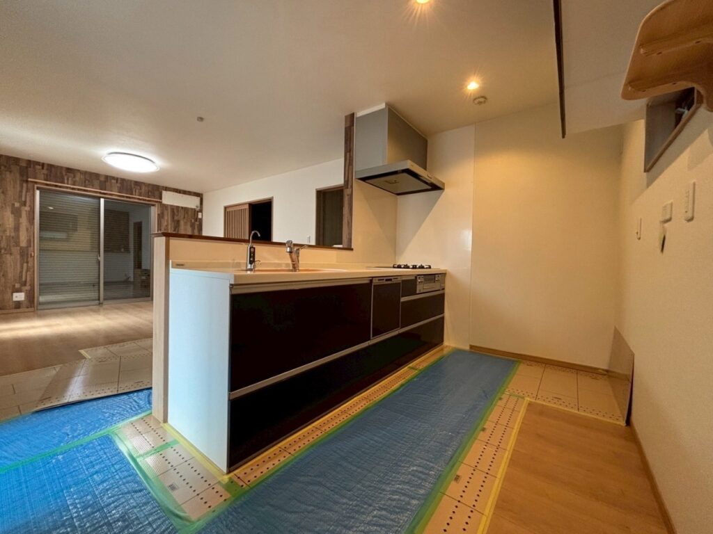 この後壁のキッチンパネルの張り替えをして新しいキッチンを設置していきます。 床のフローリングは既存のまま再利用になります。