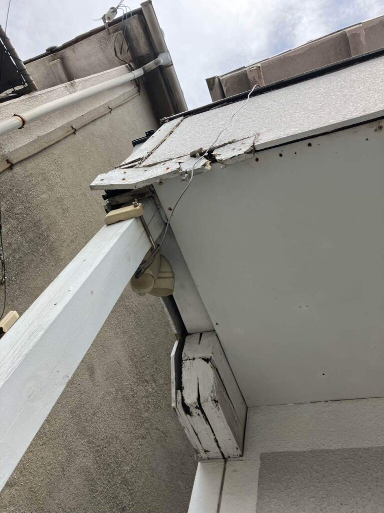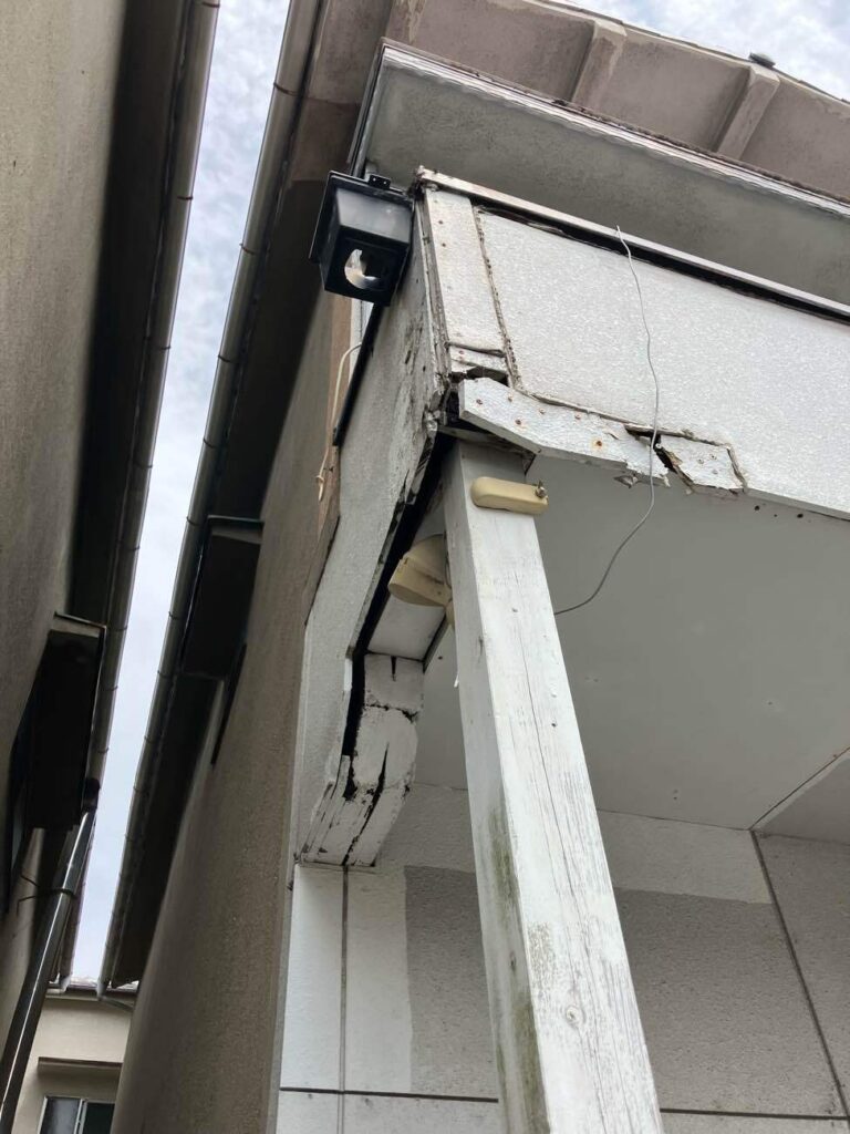 このような玄関庇やベランダなど腐食が進んでいることがありますのでメンテナンが必要です。