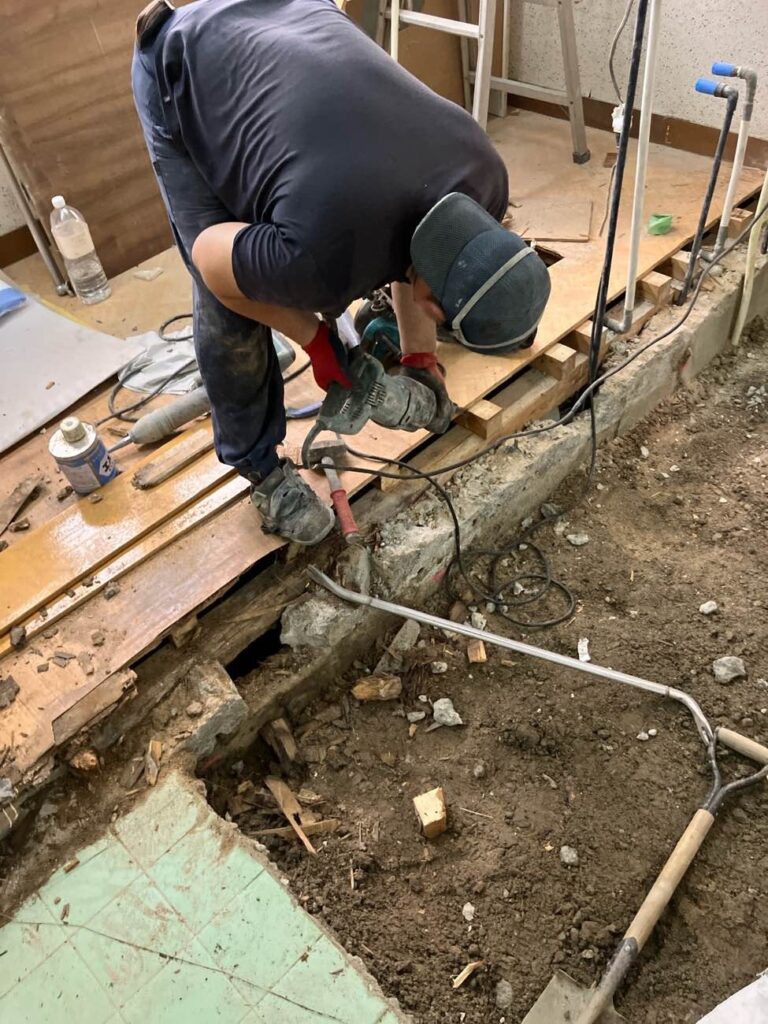 ここは脱衣所になるので解体せずそのまま床下地を造作していきます。