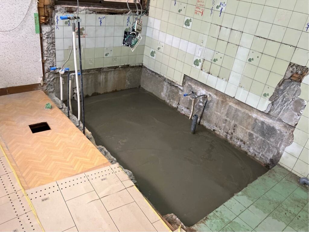 解体が終わるとユニットバスを据える為に土間を打ちます。