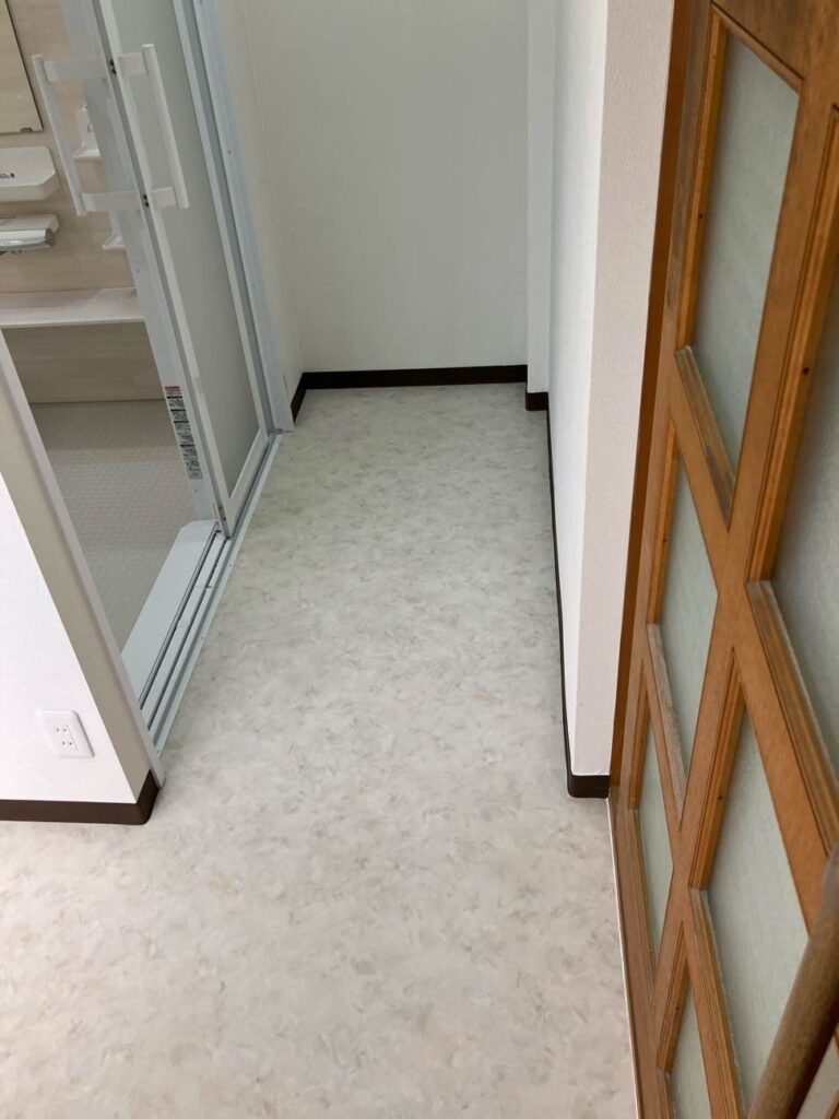 洗面所と同じ、床:クッションフロア、壁・天井:クロス仕上げにしていきます。