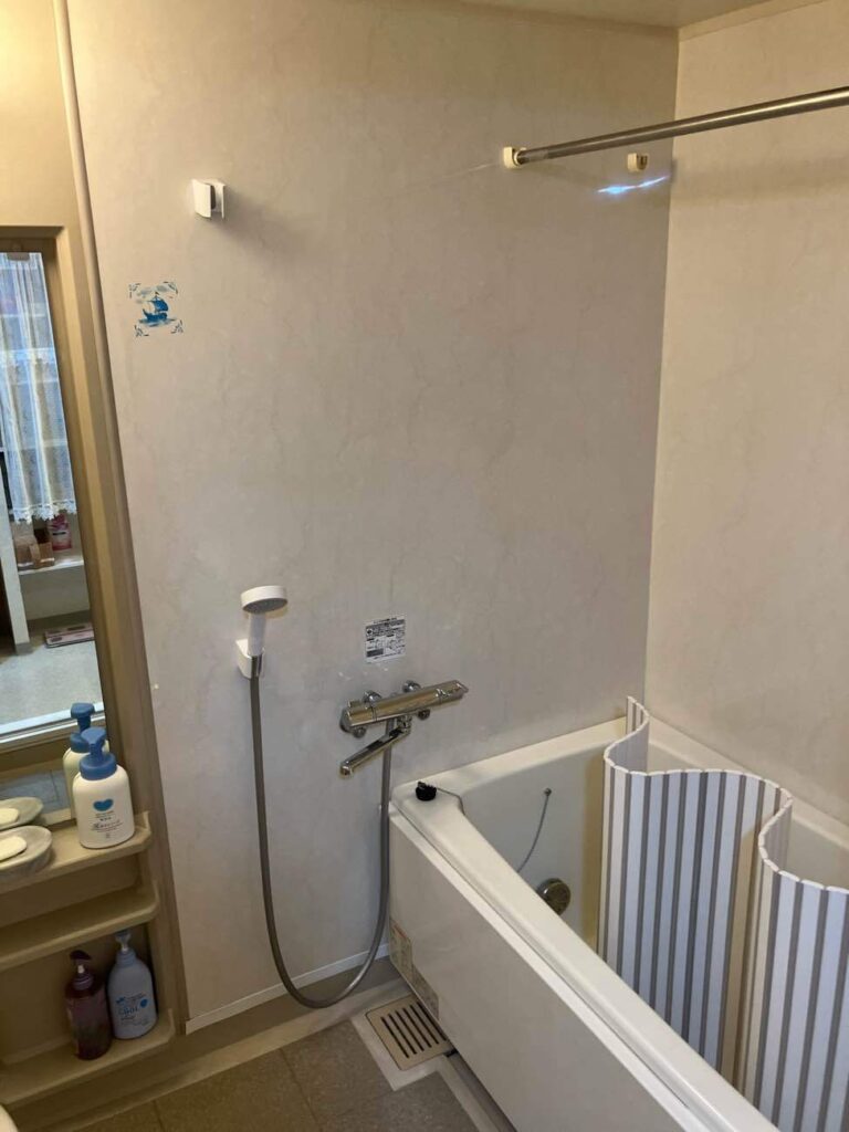 スライドバーのシャワーフックは好きな位置に止めれ、手摺としても使用できます。