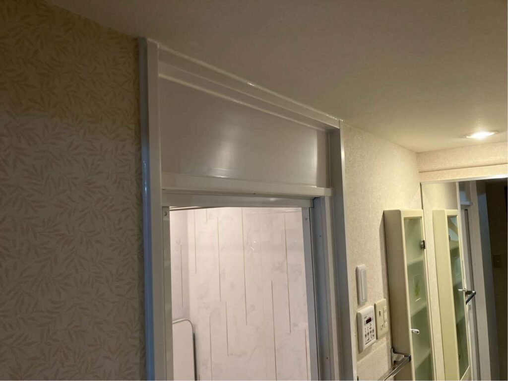 ユニットバスを組立後、最後に入口枠の造作工事を施工します。