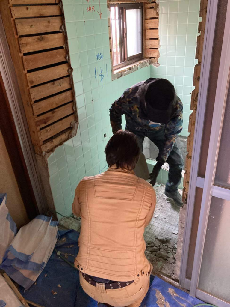 写真は、既存の浴室を解体しているところです。
