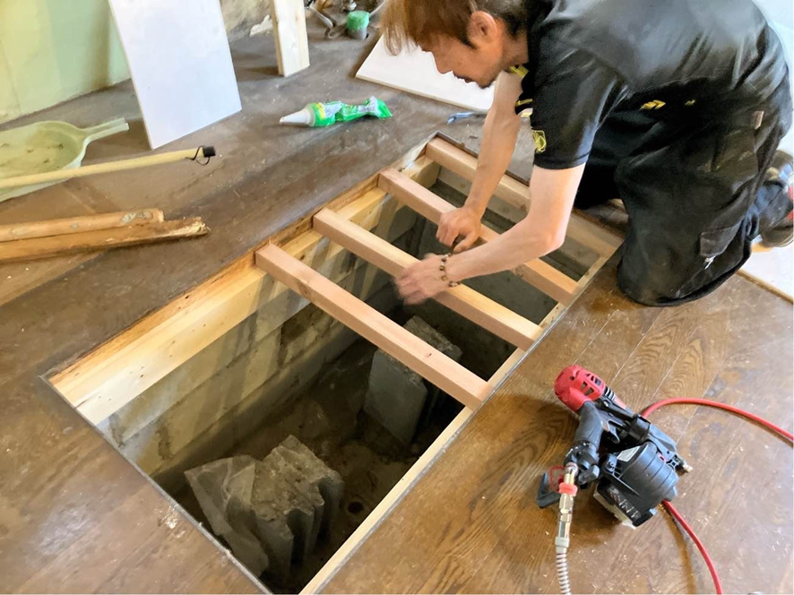 開口部分をしっかり補強するために根太の間隔も考えて組んでいきます。