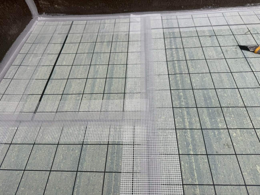 この作業時にしわができてしまうと、雨漏りが起こったり、床が膨れてきてしまうので気を付けて作業します。