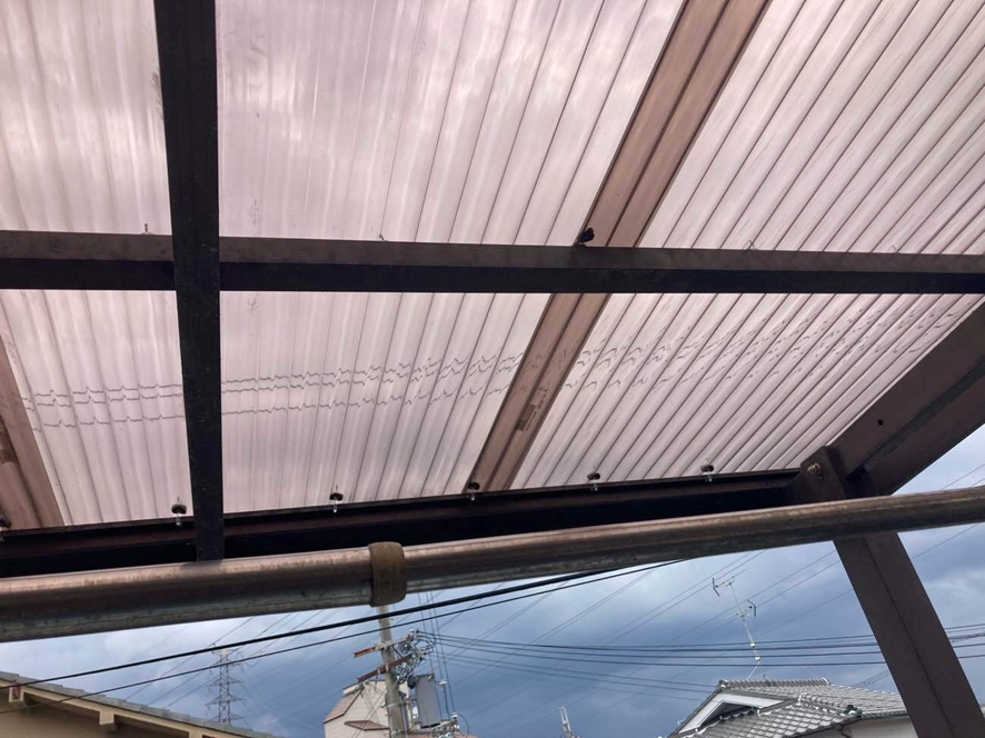 以前もご依頼いただきましたお客様より、2階ベランダの波板(ポリカーボネート)取替工事を承りました。