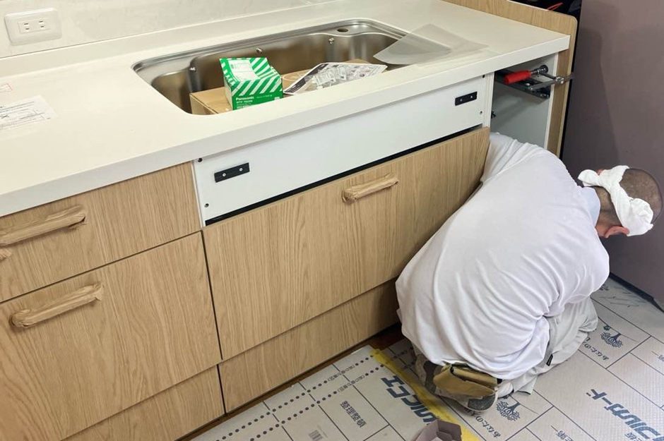 一見シンプルな「同位置交換」ですが、既存キッチンの給排水・ガス配管の位置は入念にチェックします。