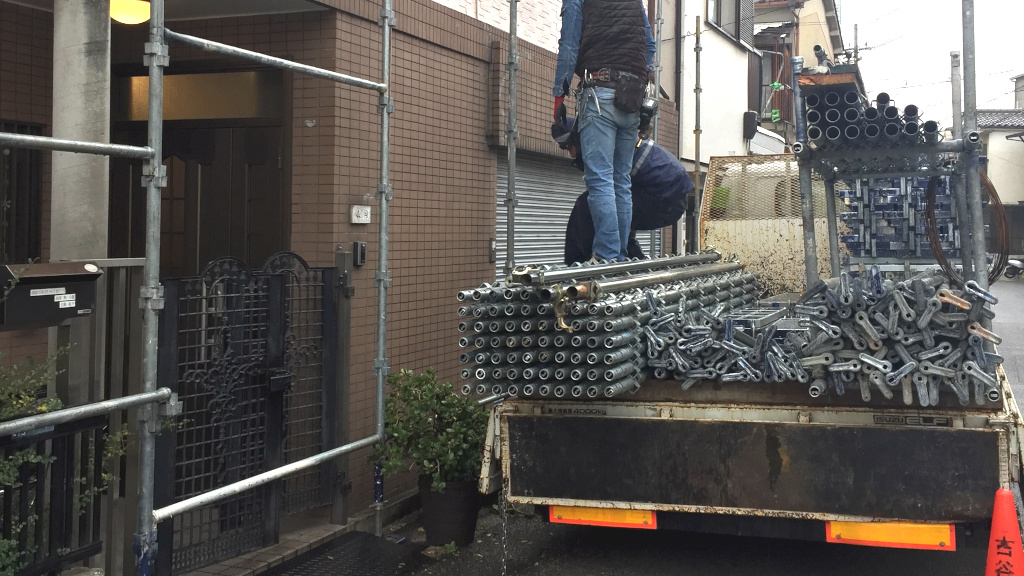 外壁塗装工事です。足場組み立て作業中です。(担当:柿木)