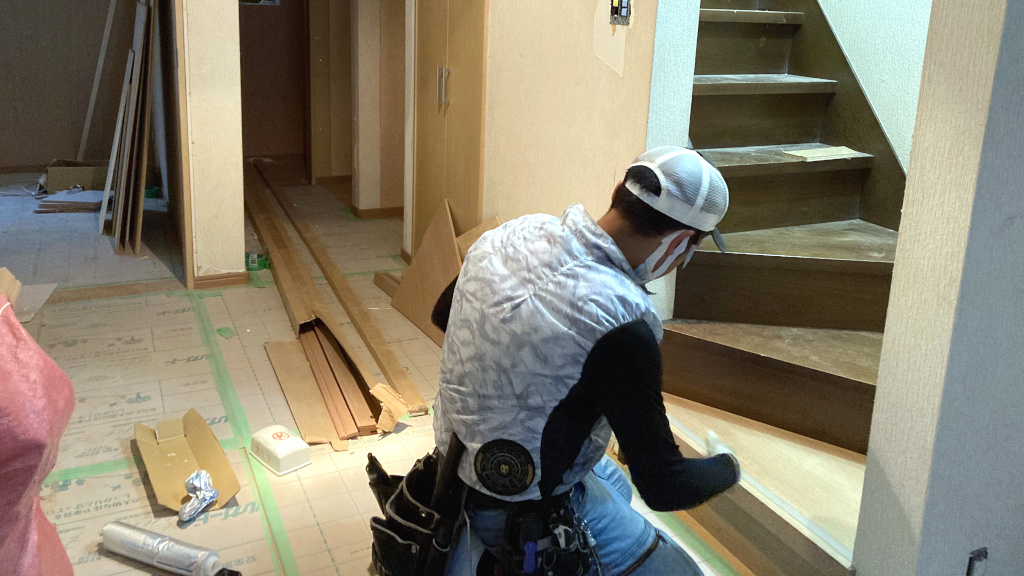 リフォーム現場 寝屋川市 リフォーム階段貼り工事中