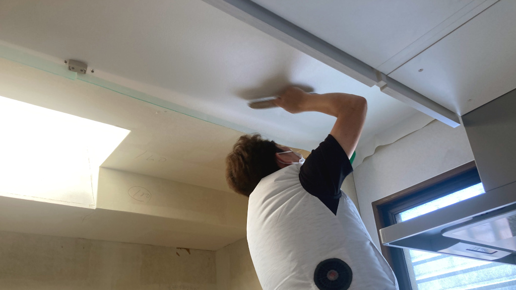 クロス貼替工事のクロス貼り作業中です。(担当:緒方)