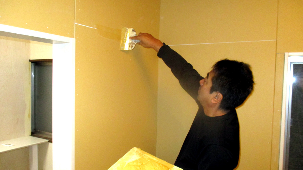 クロス貼替に伴い、下地パテ入れ作業中です。(担当:中前)
