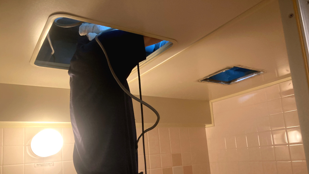 リフォーム現場 枚方市 浴室換気扇取替工事中