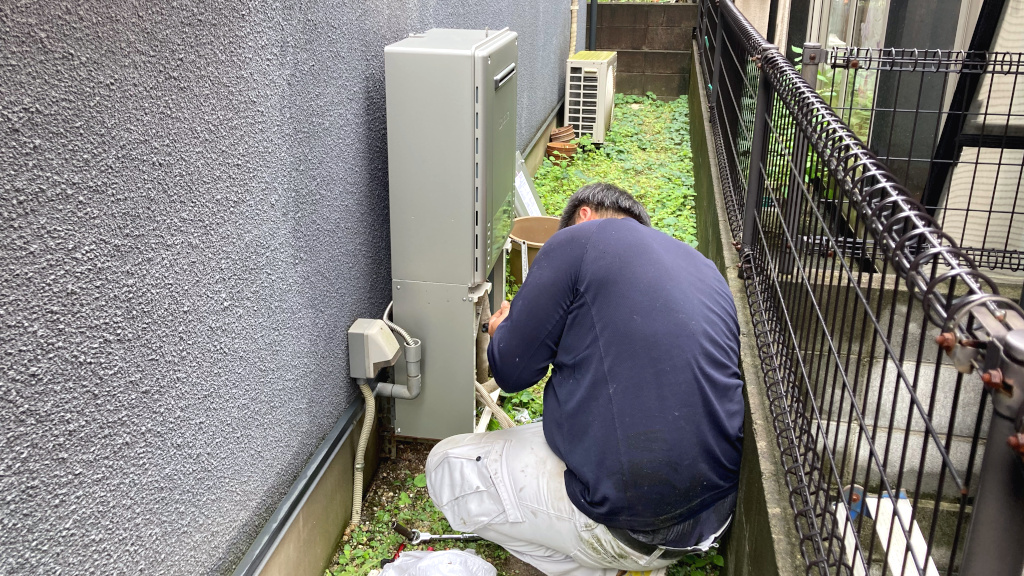 給湯器取替工事です。給水配管等の接続作業中です。(担当:濵田)