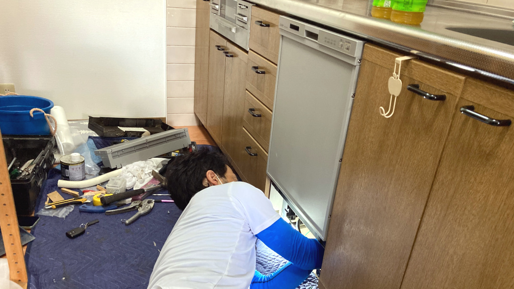 リフォーム現場 枚方市 食器洗浄乾燥機取替工事中