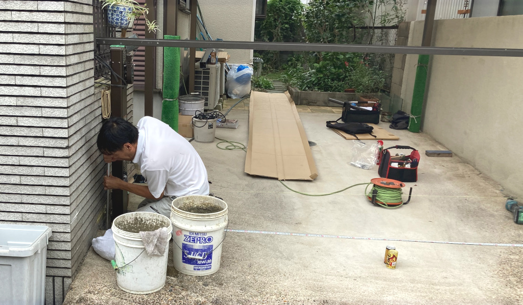 リフォーム現場 跳ね上げ式カーゲート設置工事中