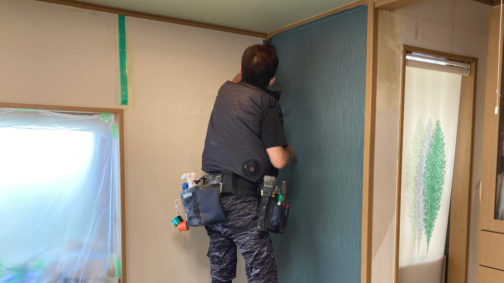アクセント貼のクロス貼替工事です。(担当:名嶋)