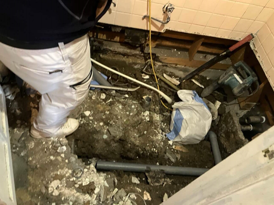 解体が終わったあとは、新たに設置するシステムバス用に、電気の配線と水道の配管を整備します。