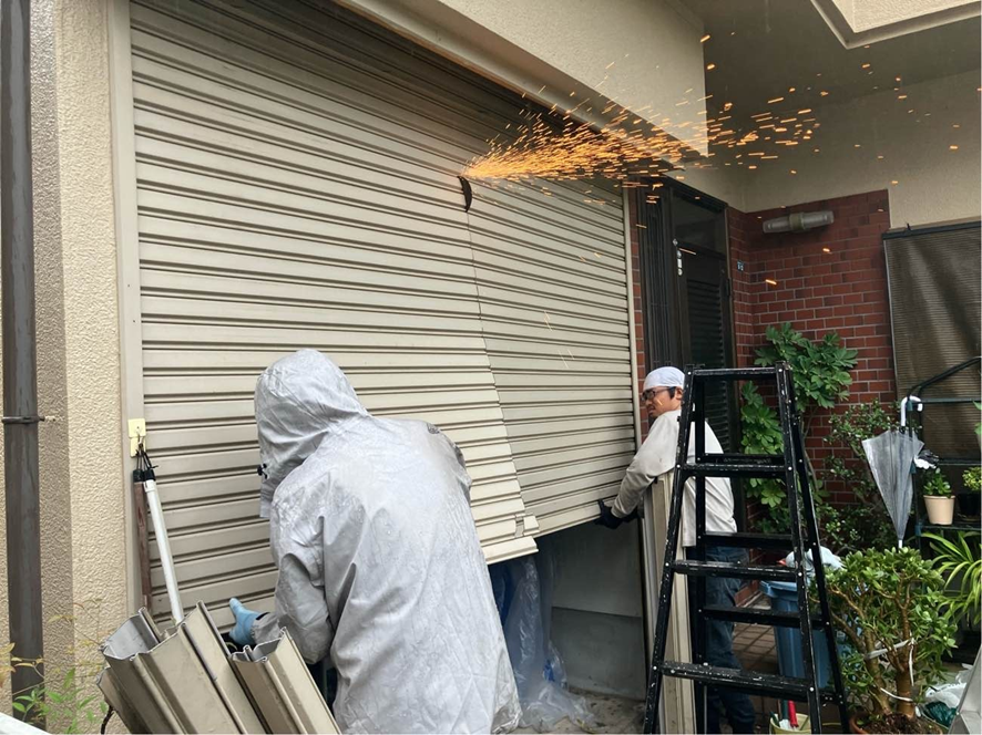 写真は既存のシャッターを解体撤去しているところです。