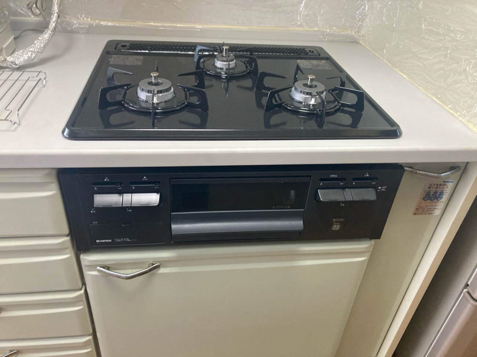 長らくご使用された三口コンロから、HARMAN(ハーマン)製のDG-32Q1VQ1へ交換させていただきました。