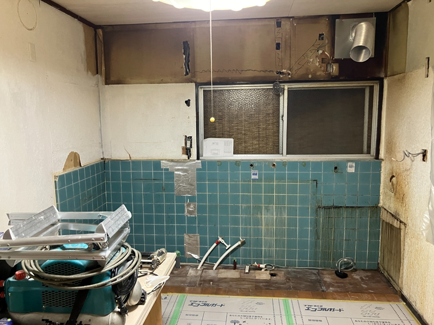 写真は既存のキッチンを撤去したところです。