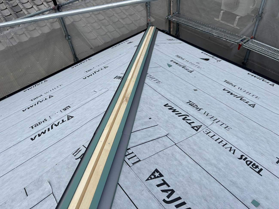 既存屋根の状態を丁寧に確認したうえで、下地補修から防水シート(ルーフィング)の敷設、