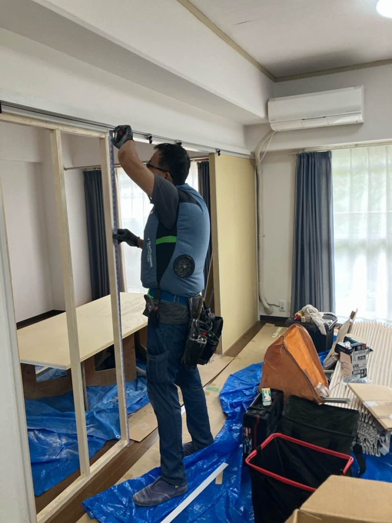 LDKの開口部分に両引き戸の建具を新設【茨木市】