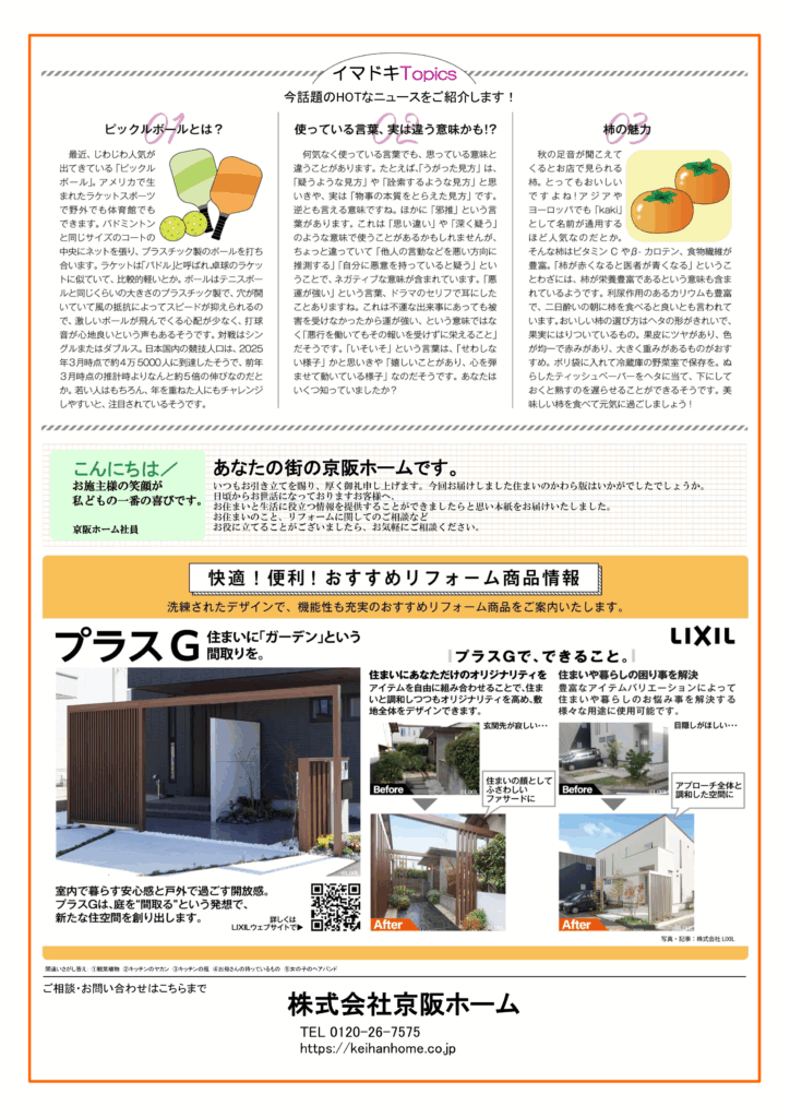 京阪ホームが毎月1回発行している「京阪ホーム新聞」ですが、リフォームの事だけではなく日頃の生活に役立つ情報を発信しております。