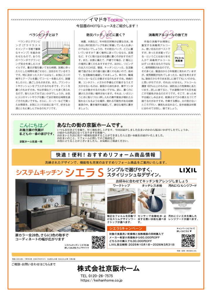 京阪ホームが毎月1回発行している「京阪ホーム新聞」ですが、リフォームの事だけではなく日頃の生活に役立つ情報を発信しております。