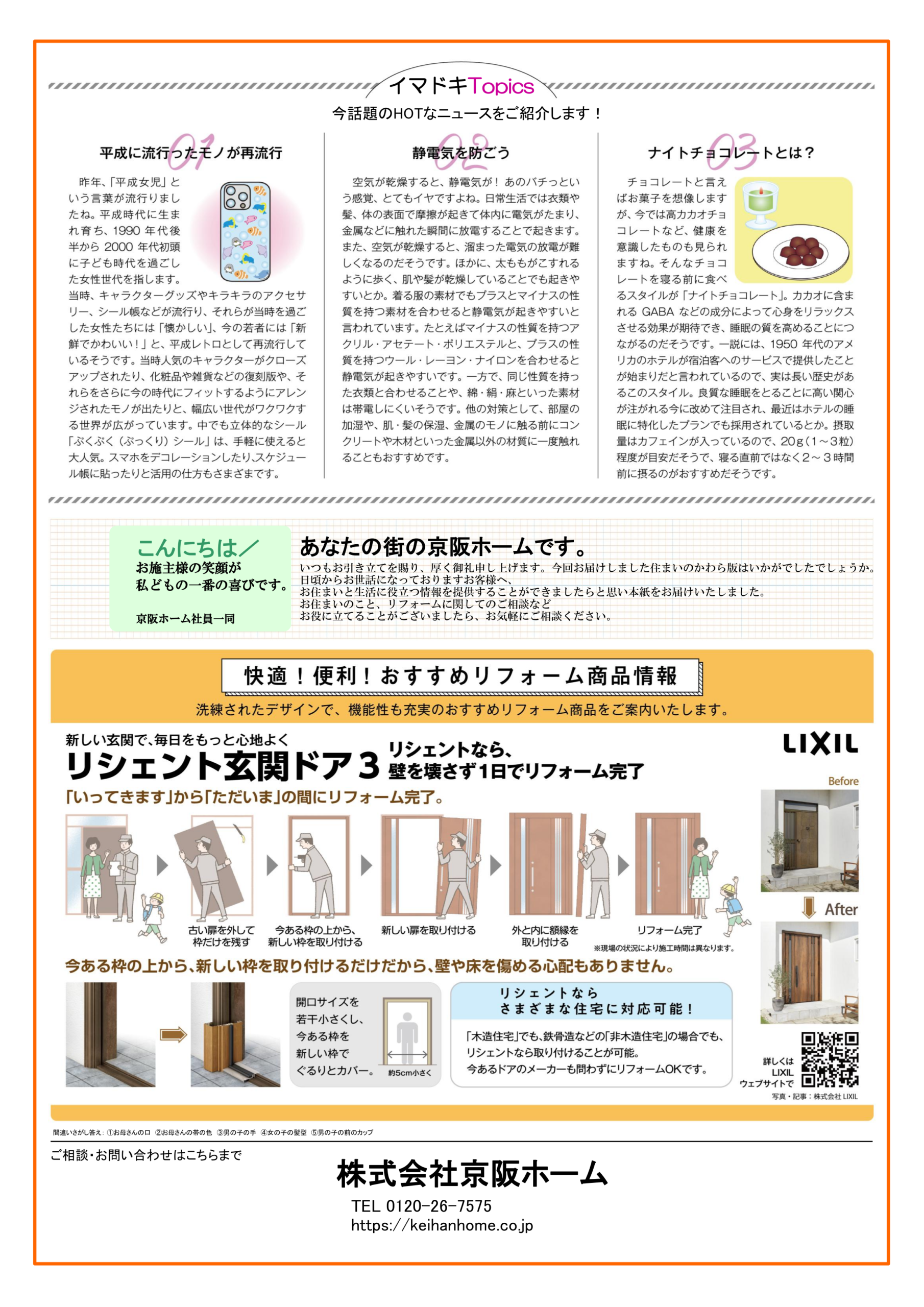 京阪ホームが毎月1回発行している「京阪ホーム新聞」ですが、リフォームの事だけではなく日頃の生活に役立つ情報を発信しております。