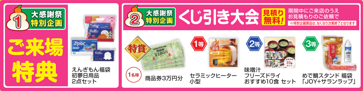 ご来場特典に加えお見積りご依頼特典(くじ引き)をご用意!